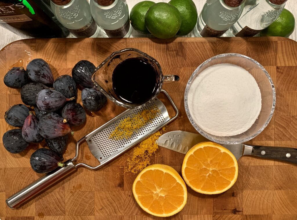 We’ve made it to the holiday season and though we had pockets of cold weather, the heat hasn’t completely subsided. I’ve still got a batch of figs in my fridge and no matter the weather something cold and fun seems to be if order. A shrub is the ideal cocktail to accomplish both! Shrubs have been around for centuries. They’re made with a fruit base that starts by cooking the fruit along with sugar and either vinegar, citrus or both. It’s sounds like an odd combination but with a pour of gin and a fizz of club soda, the result is quite wonderful!