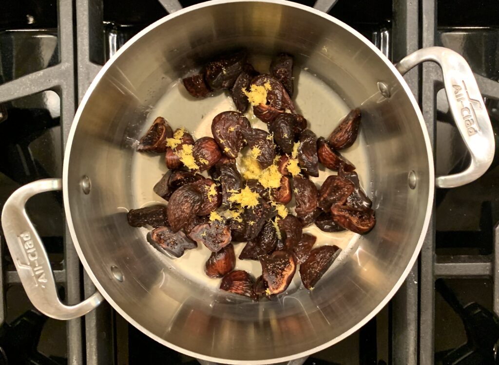 Combine the figs with the lemon zest and lemon juice in a medium saucepan.