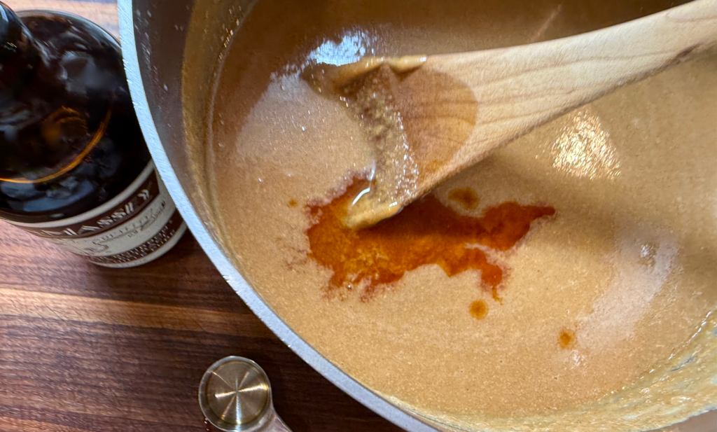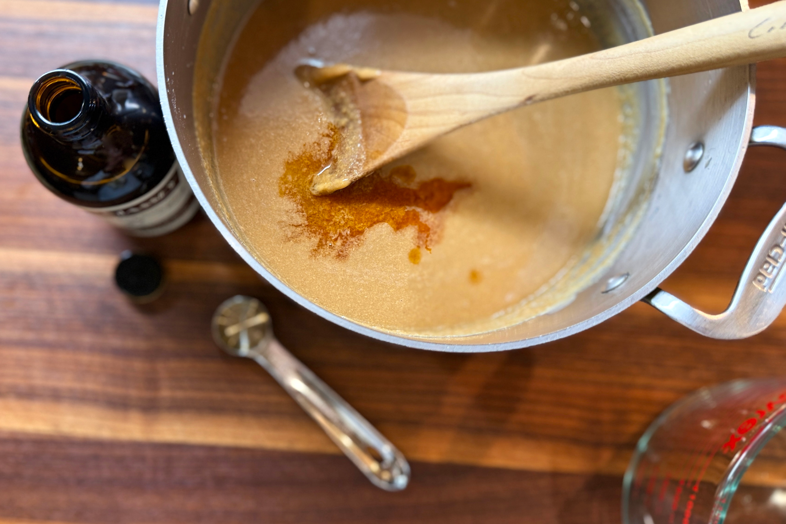 - Remove the pan from the heat and allow the sauce to cool for about 5 minutes, then stir in the vanilla extract.