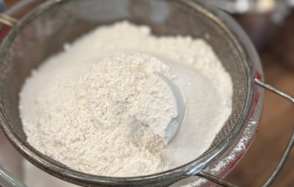 You also want to sift the flour before you measure the amount needed -then sift the flour with the sugar five times as noted. This helps to develop that light, fluffy texture you’re after.
