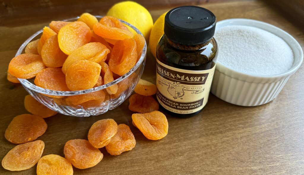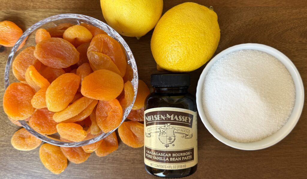 But finding great, fresh apricots in the markets with that beautiful bite is a challenge. We’ve made jam from dried figs, so could the same be done successfully with dried apricots. The ingredient list is short. Dried apricots, lemons, sugar, a bit of kosher salt and pure vanilla bean paste.
