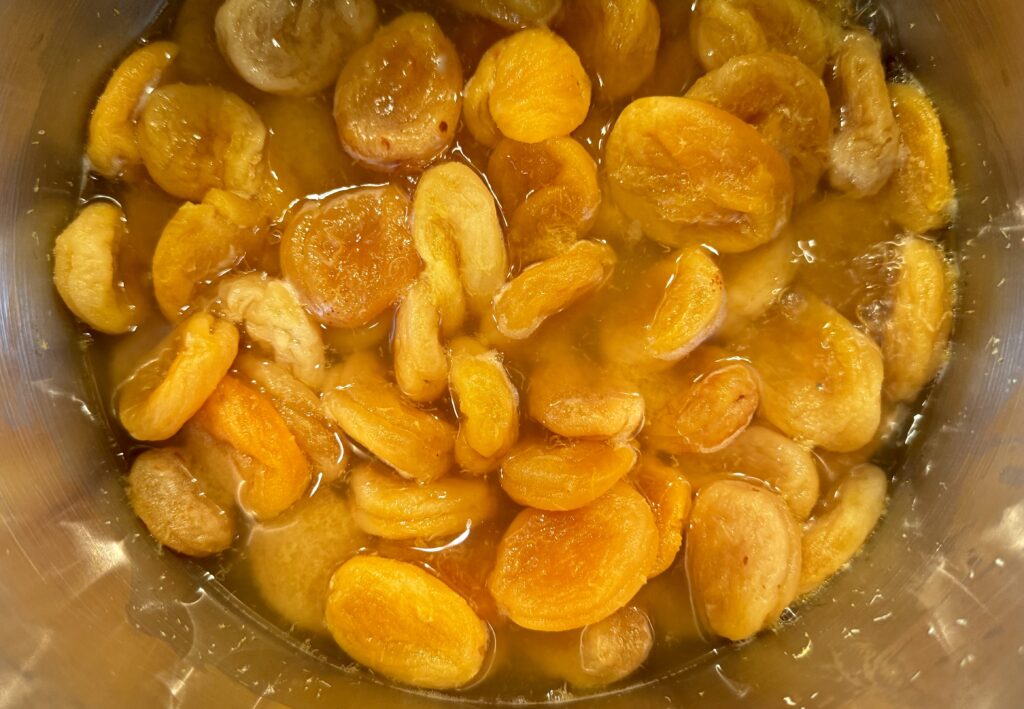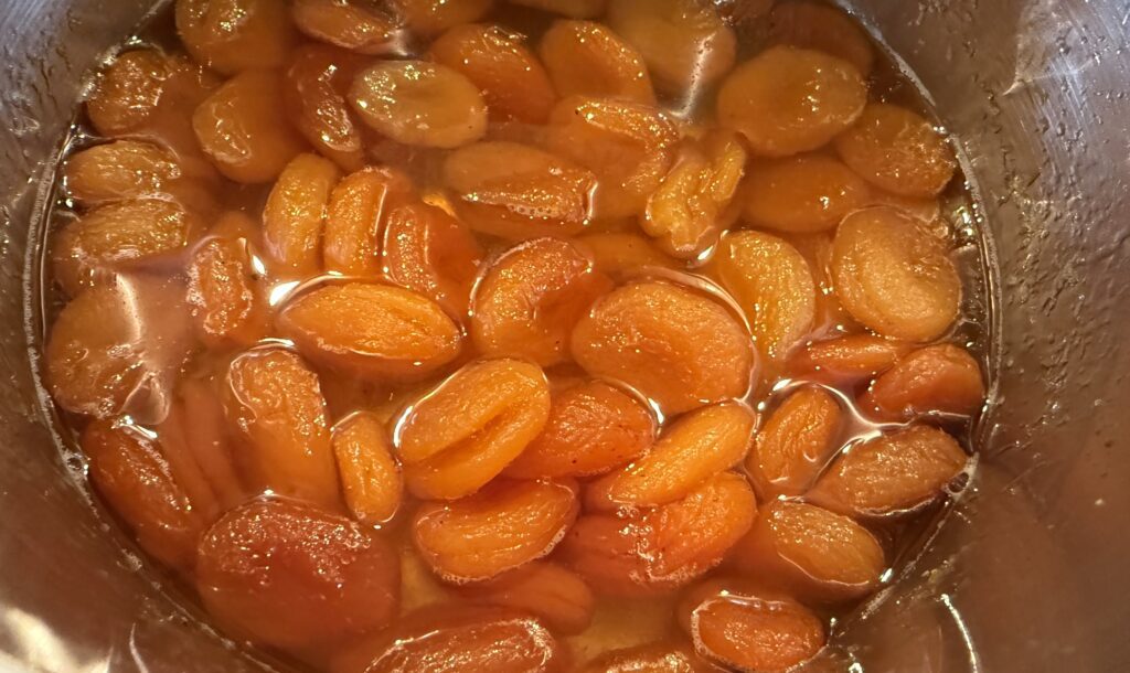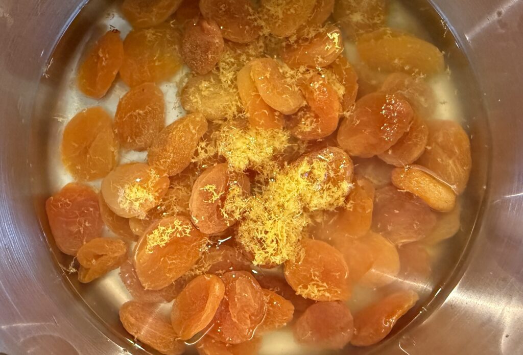 Plump the apricots in water along with the zest and juice from two fresh lemons.