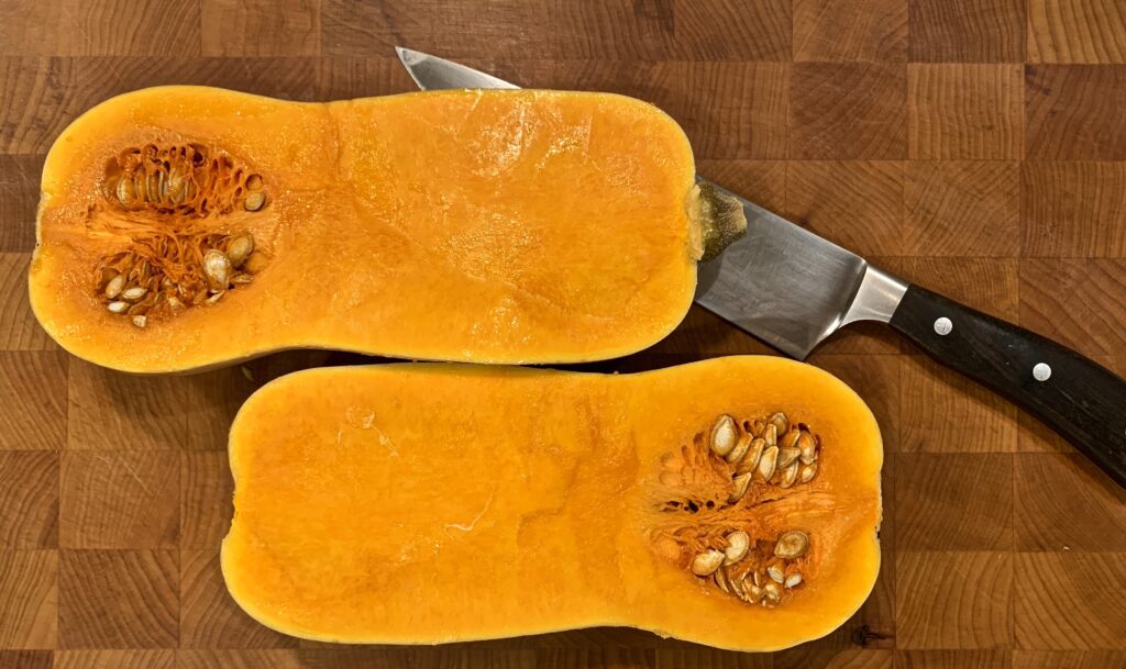 - 1 large butternut squash, cut in half lengthwise