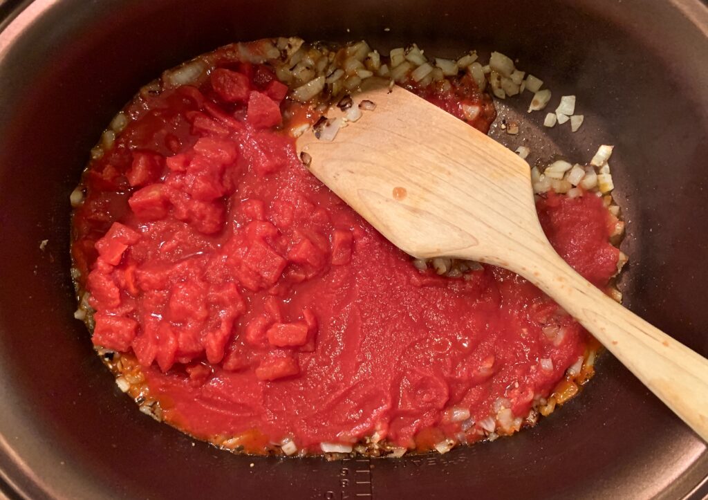 This dish is prepared in a slow cooker and requires minimal prep plus it cooks while you’re relaxing – or handling other tasks! I have a number of slow cookers and they come in quite handy for holidays and large gatherings. My favorite is All-Clad’s slow cooker with a built-in browning function, allowing you to sauté the onions and garlic then switch over when you’re ready to slow things down.