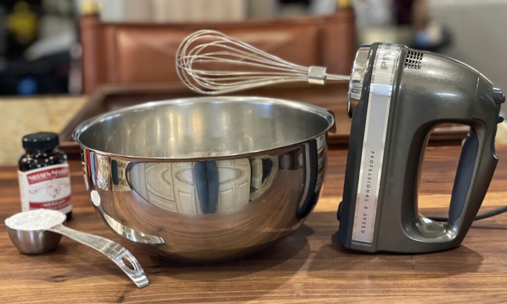 To make certain you get the volume you’re after with the egg whites, wash the beaters thoroughly after you tackle the egg yolks. Beat the whites before the cream to avoid any of the butterfat from the cream from getting into the egg whites. Any amount of fat can prevent egg whites from producing the volume you’re after. Beat the egg whites just until soft peaks form. But if you get carried away, don’t stress. Just add another egg white and gently beat it in until you get those soft peaks.