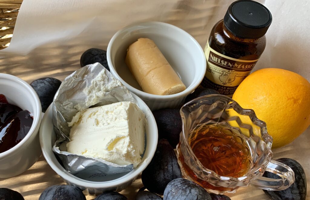 The filling is a delicious blend of cream cheese, almond paste, maple sugar, and a touch of maple syrup and maple sugar along with pure vanilla paste, orange zest and a splash of freshly squeezed orange juice.