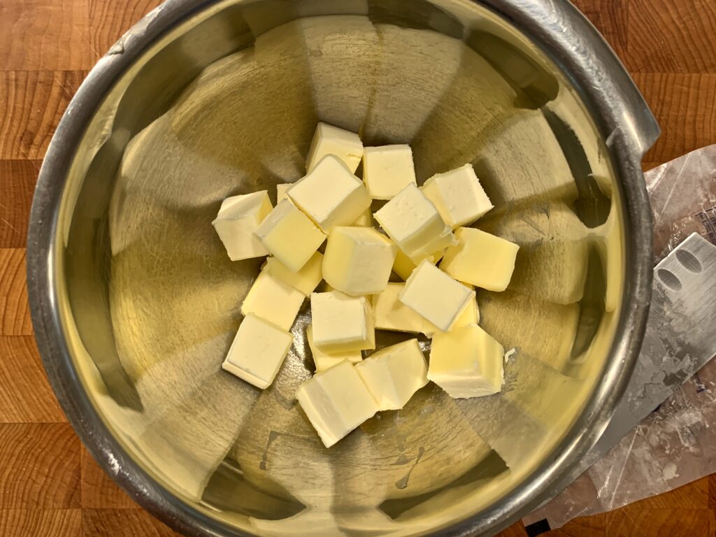 - Cut the butter into cubes and chill in the freezer for about 30 minutes.