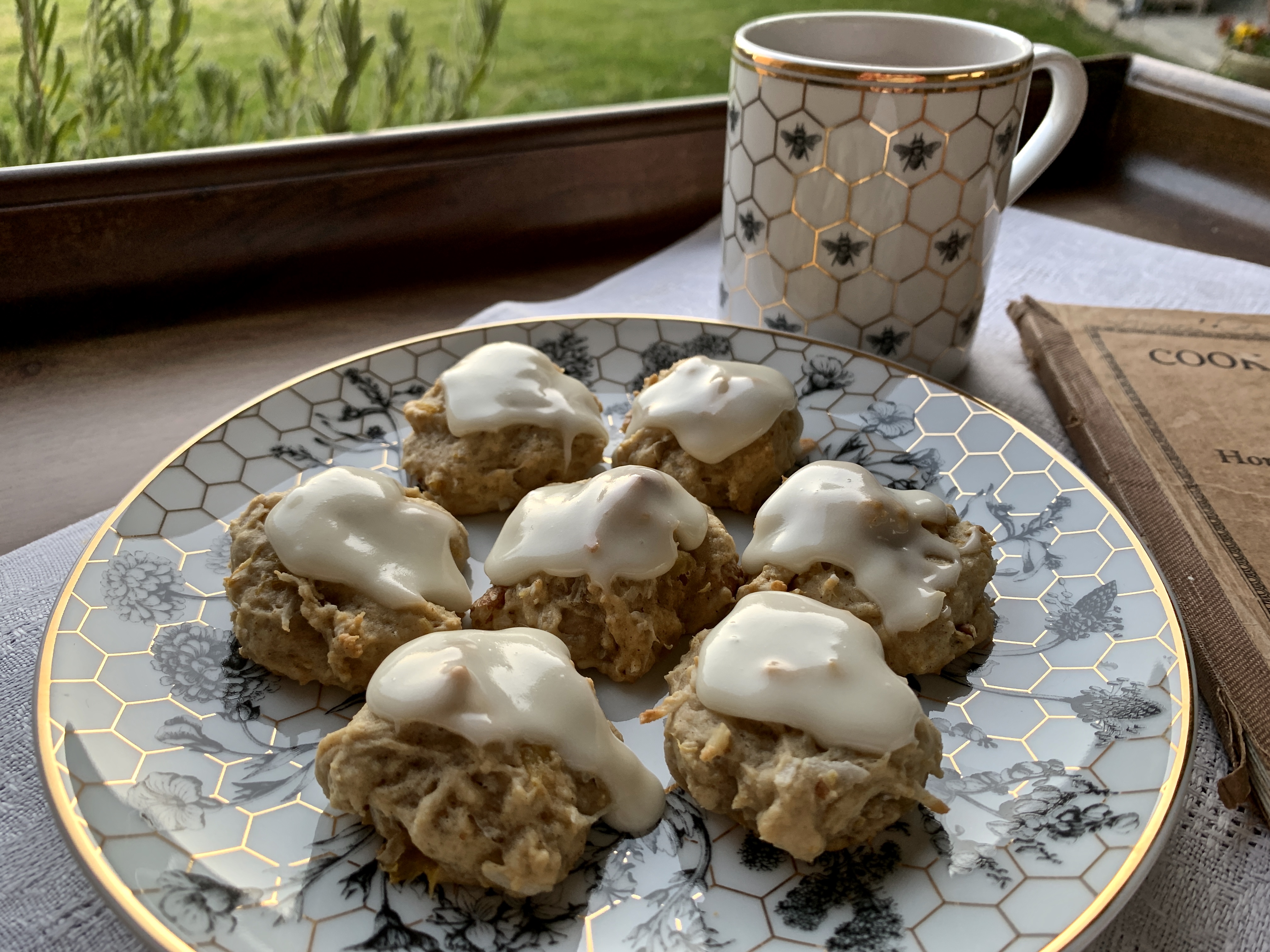 These delicate cookies have the perfect amount of sweet. Similar to the Hummingbird cake, the cookies are made with both granulated and dark brown sugar, creamed into butter. Cinnamon and nutmeg are added along with pineapple, banana, coconut and pecans plus pure vanilla extract to round out the flavor notes.