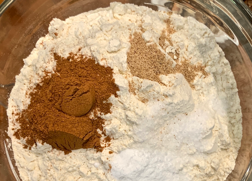 In a separate bowl, whisk the flour with the soda, kosher salt, cinnamon, and nutmeg.