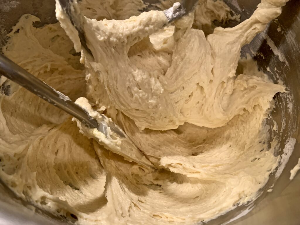 - Add the eggs one at a time using medium speed. After the second egg has been added increase the speed to medium-high and beat for about 2 minutes until the batter is very smooth. Scrape the sides of the bowl as needed.