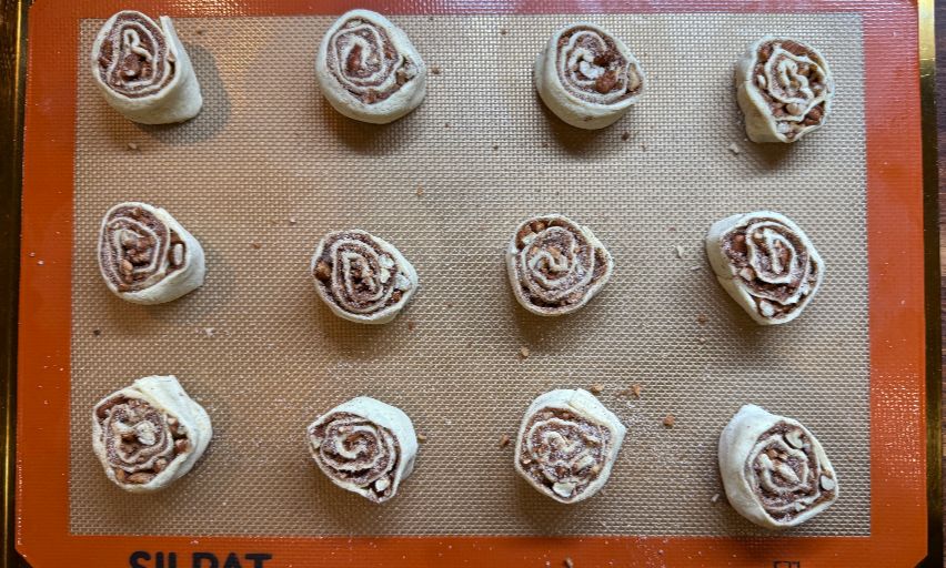 Cut into 12 pieces and place the pastries on a baking sheet lined with a Silpat liner of parchment paper.