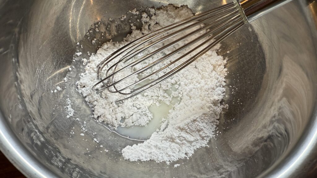 - In a small bowl, whisk the powdered sugar with the remaining milk, adding as much as needed to reach a smooth consistency.