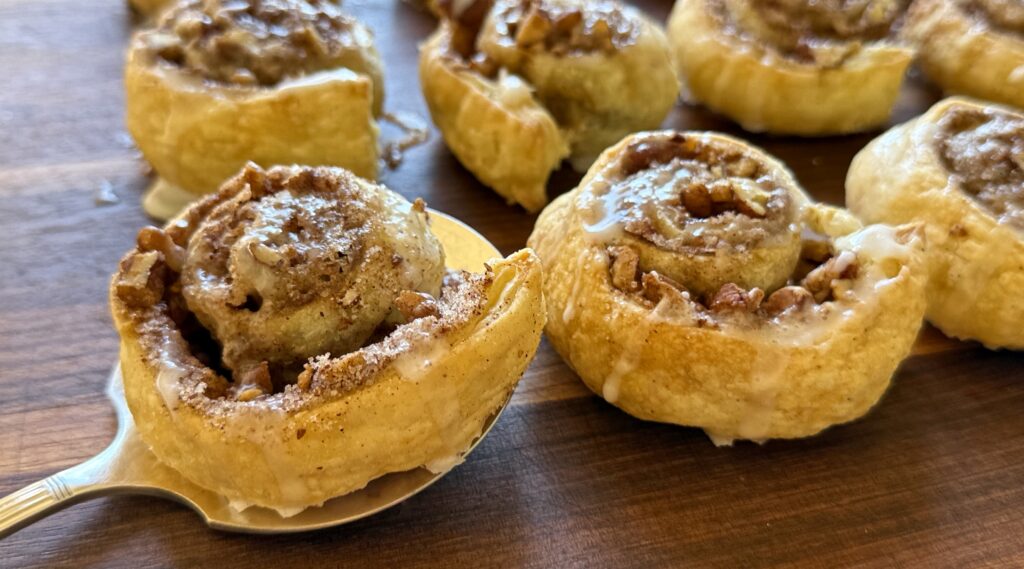 Holiday lights are beginning to twinkle in the neighborhoods and we’re gearing up for entertaining with family and friends. Before the turkey hits the table there are still plenty of meals to serve up. Taking a cue from my Mom, keeping a stocked pantry is key to keep things moving during this very busy season. And though traditional sticky buns require hours in the kitchen, this shortcut method will have them on the table in under an hour.