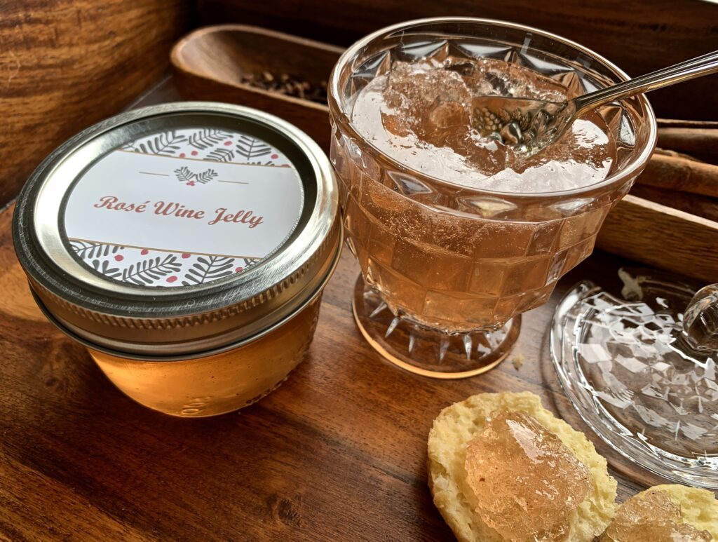 As the days begin to shorten in the fall and the evenings cool, we tend to shift to more robust red wines and many folks start consuming the last of their rosé wines. But rules are loosening a bit and rosé wine, with its crisp, fruity flavor, is often served throughout the holidays. This jelly evolved from an old recipe we have for Burgundy Wine Jelly. My Mom happened to have a number of bottles of rosé wine sitting around, leftovers from a party. Trying to decide what to do with them we opted to make jelly. It was nearing the holiday season and the addition of spices seemed to come naturally.