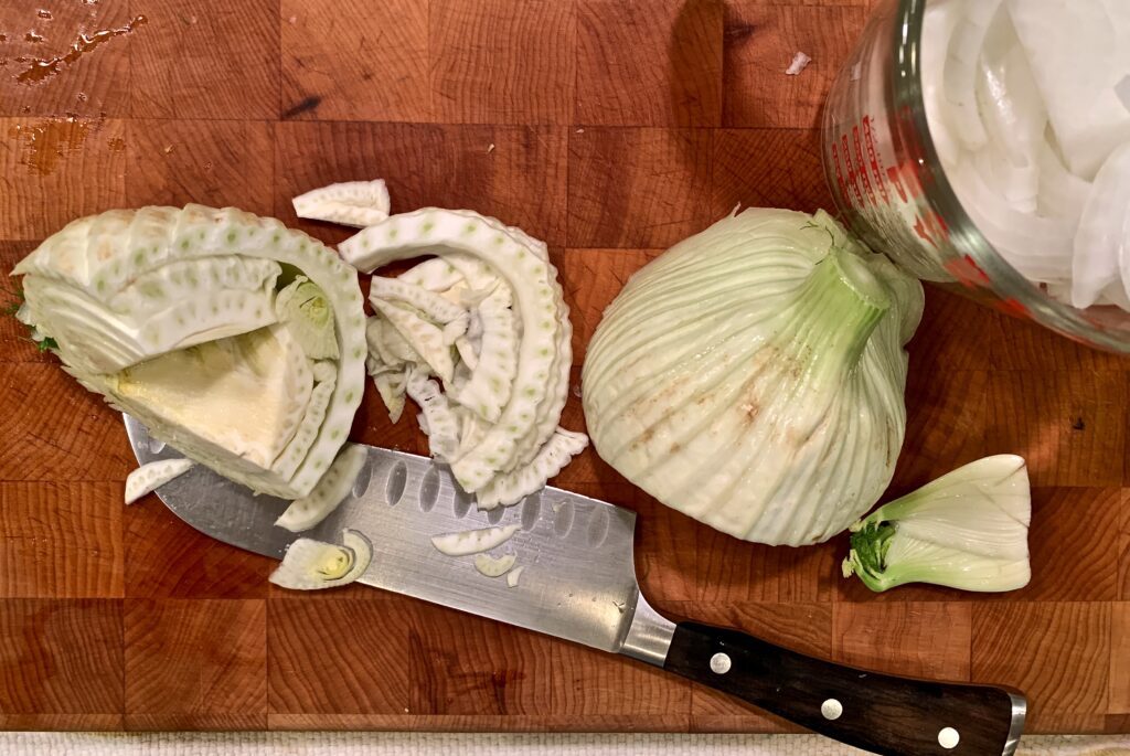 - 1 large fennel bulb, cored and thinly sliced, 2 cups