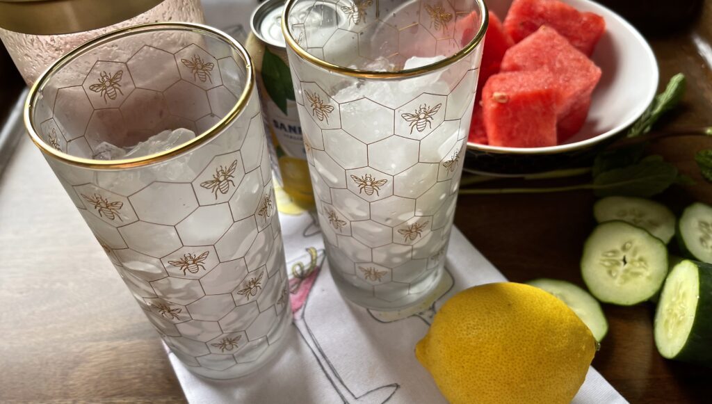 It’s not our first time using watermelon in cocktail and we’ve also used cucumber. Loving the flavors that each one lends to a drink, this seemed like it could be a good fit for a summertime beverage. Start with a quick run through your farmer’s market grabbing sweet watermelon, some lemons, fresh mint, and a cucumber. Mix in a great vodka plus a touch of simple syrup then add some effervescence with a pour of sparkling lemon soda.